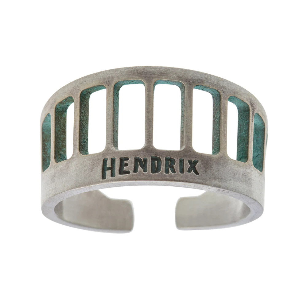 Inspired by Hendrix’s bridge – Silver with green patina inverted.